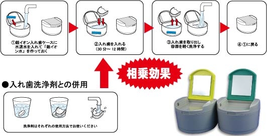 しかし、『銀イオン入れ歯ケース』では水道水だけで効果があります。
