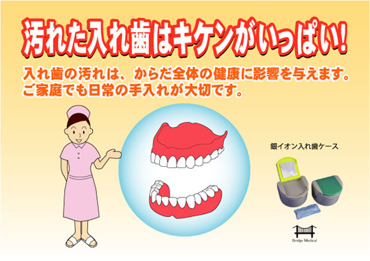 銀イオンパワーで入れ歯のヌメリを取って除菌・消臭口腔内感染を防ぎます。