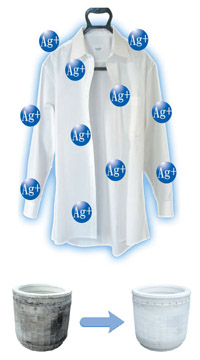 洗濯後、銀イオンが衣類をコートし、菌の付着を防止、